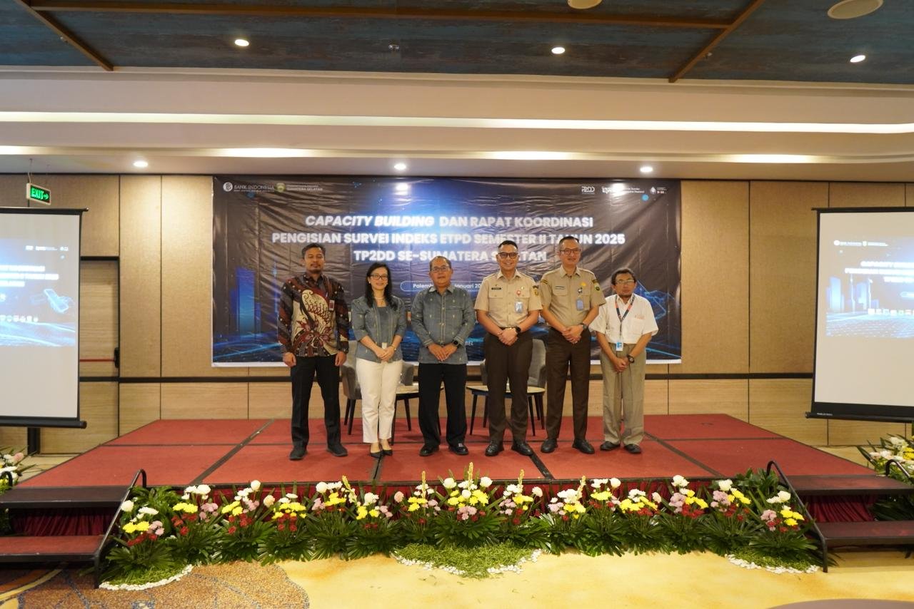 Palembang, Veritika.id – Bank Indonesia bersama Tim Percepatan dan Perluasan Digitalisasi Daerah (TP2DD) Provinsi Sumsel menyelenggarakan kegiatan Capacity Building dan Rapat Koordinasi Pengisian Survei Indeks Elektronifikasi Transaksi Pemerintah Daerah (IETPD) Semester II Tahun 2025 di The Alts Hotel Palembang, Selasa (20/1/2026).